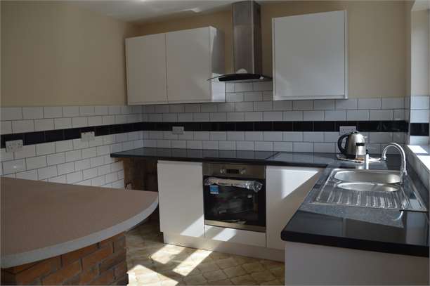 Kitchen/Diner: 12’63 x 9’25 New white gloss kitchen, black and white wall tiles, win-dow to rear, door leading to garden, ceramic flooring - open plan leading onto dining room